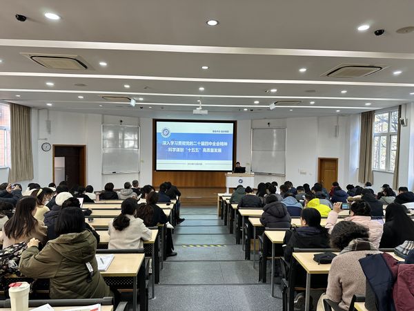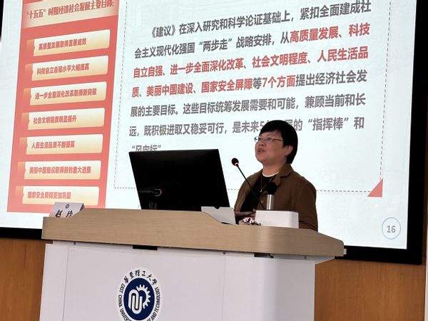 为深入学习贯彻党的二十届四中全会精神、科学谋划学院“十五五”时期高质量发展蓝图,12月26日下午,信息学院在徐汇校区研究生楼第四多媒体教室召开全体教职工政治理论学习大会,学校发展规划处处长,化工学院教授赵玲受邀作“深入学习贯彻党的二十届四中全会精神 科学谋划“十五五”高质量发展”专题报告。此次学习由信息学院党委副书记郭卫斌主持,信息学院党委中心组成员及全体教职工参加学习。