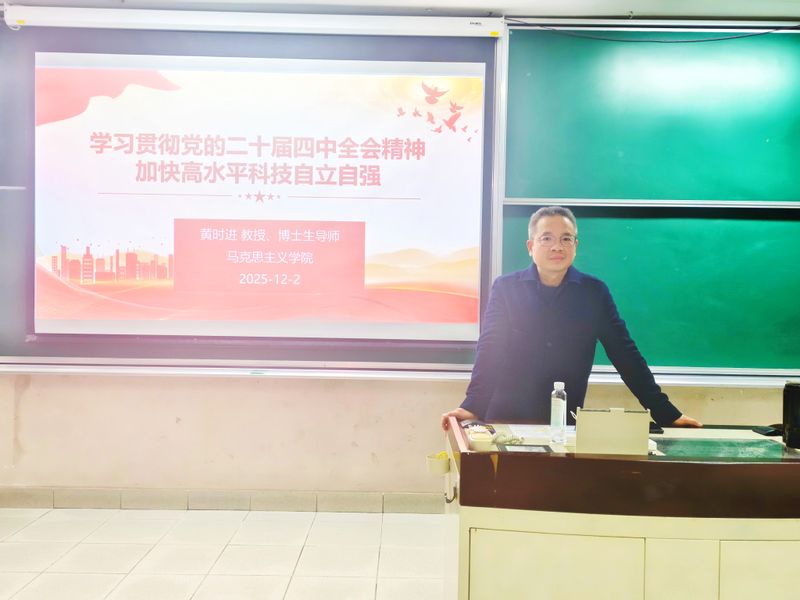 为深入学习贯彻党的二十届四中全会精神,近日,外国语学院召开专题学习会,邀请上海市科教党委百名专家宣讲团成员、学校马克思主义学院黄时进教授作题为“学习贯彻党的二十届四中全会精神——加快高水平科技自立自强”专题辅导报告。外国语学院领导班子、全体教师共同参加学习。