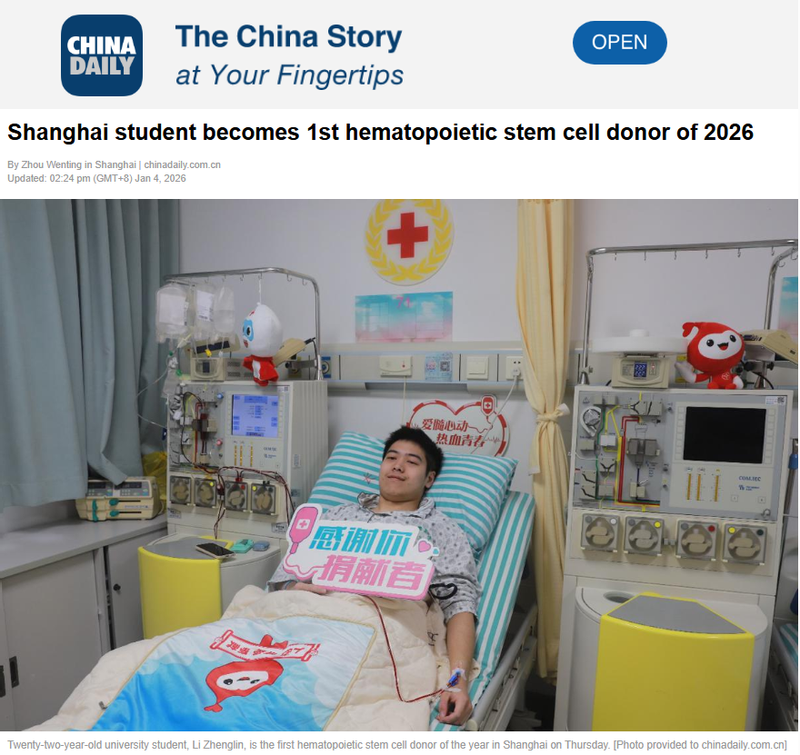 【CHINADAILY】Shanghai student becomes 1st hematopoietic stem cell donor of 2026