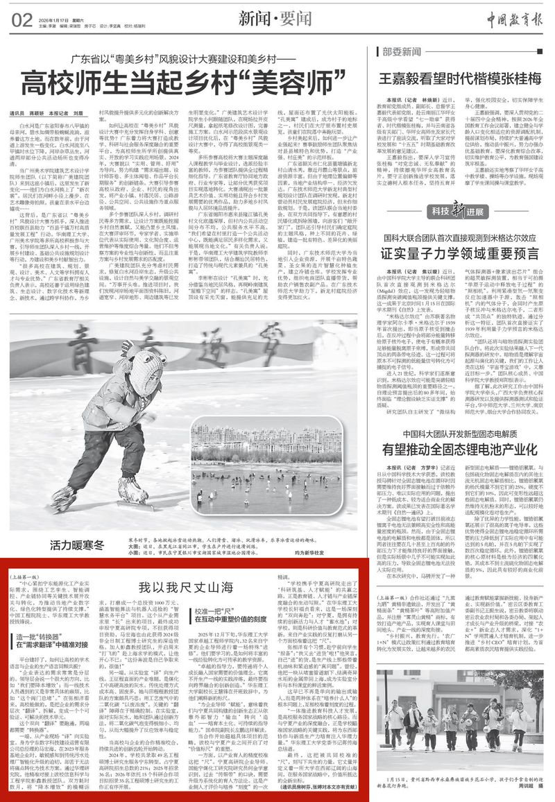 1月17日,中国教育报头版头条刊发《我以我尺丈山海——华东理工大学与西部产业的一场融合实践》。
