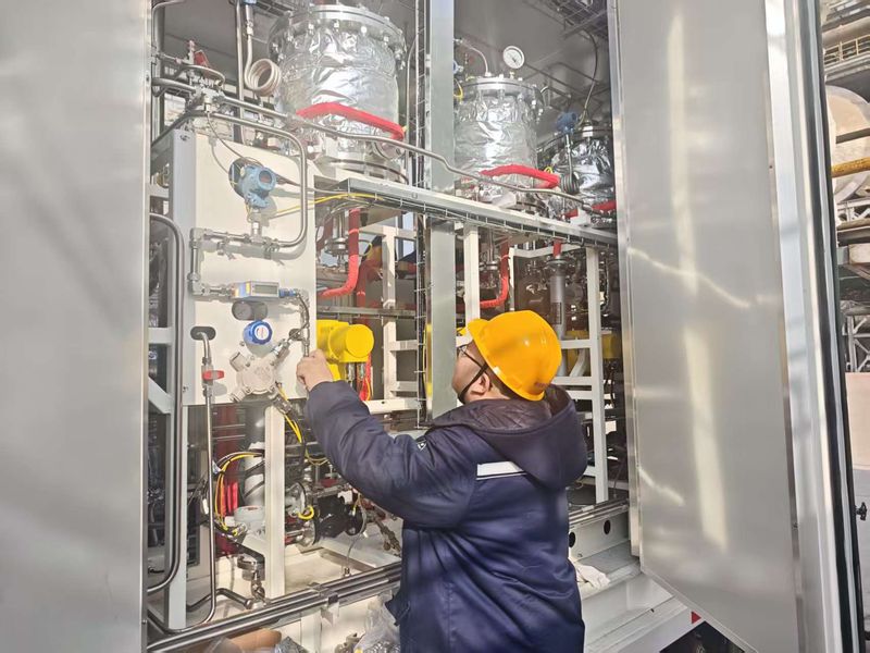 图片说明:团队成员在调试安全氢基能源储氢示范装置