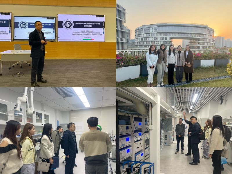 资环学院一行先后参观了大气环境风险表征与管理实验室、可持续大气环境中央实验室、室内光化学模拟舱及智能控制系统等实验室及平台,详细了解了学校枢纽与学域相关情况,调研了红鸟硕士项目(RBM)的招生及培养模式并参观了学生共创空间。修光利教授做了《杭州湾地区臭氧污染特征与VOCs管控标准进展》专题学术交流报告。学院党委副书记曹娜、团委书记曹悦与校学生工作、宿舍管理、心理中心及就业指导中心相关负责老师围绕本研学生培养、“一站式”社区管理、书院制建设、心理健康教育、校企产教融合等方面开展了座谈交流。