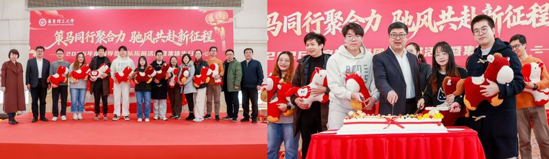 为加强辅导员队伍高质量建设,进一步凝心聚力、砥砺前行,1月23日,学校在徐汇校区体育馆举行“策马同行聚合力 驰风共赴新征程”2026年度辅导员团队拓展暨集体生日会活动。校党委副书记沈海涛,校党委常委、组织部部长夏江雯,党委学生工作部(处)部(处)长崔姗姗、党委研究生工作部部长孙洪锋、校团委书记魏星、教务处处长朱学栋、体育学院党委书记徐文方出席活动,各学院党委副书记、专职辅导员及学工、研工、团委等部门教师150余人共赴这场充满温情与活力的年度盛会。