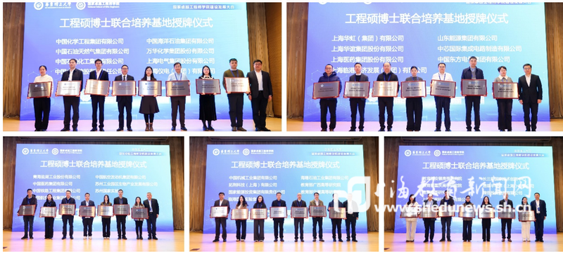 在工程硕博士联合培养基地授牌仪式上,华东理工大学党委副书记沈海涛,校党委副书记、纪委书记龚跃,副校长李涛、阎海峰、赵黎明为联合培养基地代表授牌。