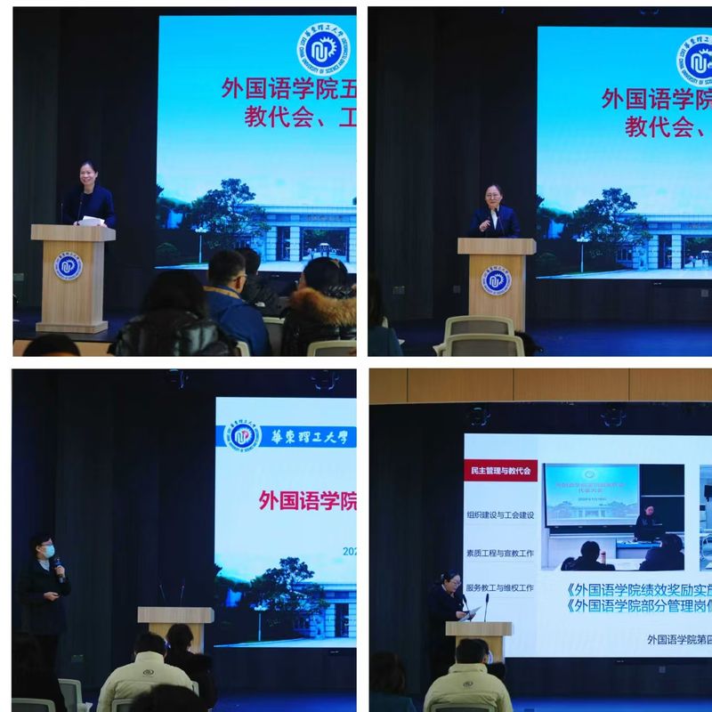 日前,外国语学院五届一次“双代会”暨2026年迎新活动在徐汇校区八角亭二楼举办。外国语学院党政领导、“双代会”代表及全体教职工齐聚一堂,共同回顾过去,展望未来。
