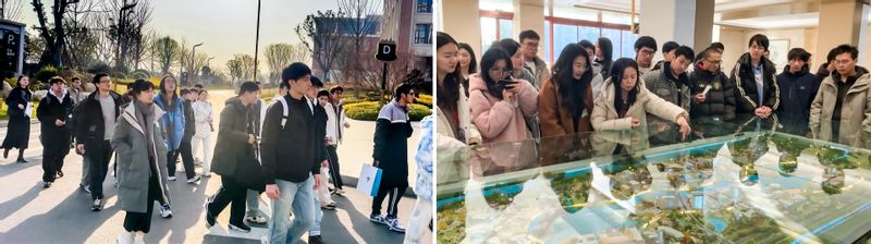 聚焦科技领域数智化转型趋势,师生一行赴华为练秋湖研发中心参访学习,沉浸式感受科创企业的技术底蕴与发展活力。师生乘坐园区接驳车全方位参观园区布局,沿途领略融合现代科技感与生态美学的建筑群落及绿化景观,深入了解企业办公文化、研发体系与创新生态,切实感受科技创新驱动发展的强劲势能。