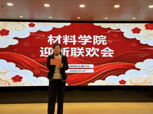 材料学院党委书记袁媛在致辞中表示,感谢全体师生为学院发展辛勤付出,过去一年,在全院师生共同努力下,在党建引领、教育教学、学科建设、人才培养、平台建设等方面取得丰硕成果。2026年作为“十五五”开局之年,希望大家同心实干、勇毅前行、再创佳绩。新春将至,她代表学院领导班子向全体师生及家人致以美好的祝福。