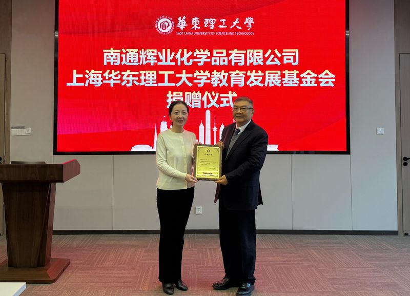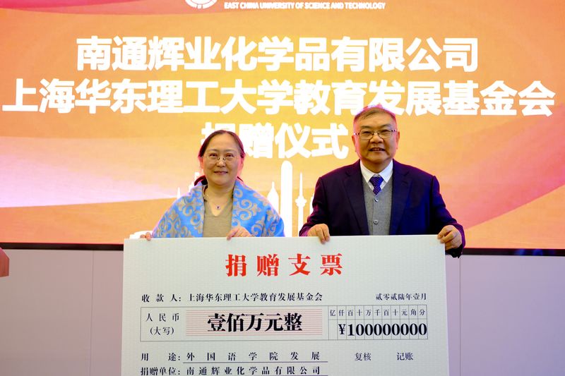 在通还举行了南通辉业化学品有限公司、上海华东理工大学教育发展基金捐赠仪式。南通辉业化学品有限公司董事长、南通校友会会长、我校科技英语专业88届校友蒋居兵深情回顾了求学时的往事以及南通校友会为校友搭建温暖港湾,助力会员职业发展与资源共享的实践,更以自身创业历程和立足南通、反哺母校、服务地方的生动故事,展现了华理人“勤奋求实,励志明德”的精神传承。外国语学院党委书记王喆代表学院接收了捐赠支票,并为蒋居兵校友颁发了校外导师证书。校友与发展联络处处长、上海华东理工大学教育发展基金会秘书长王芝眉为蒋居兵颁发感谢状。