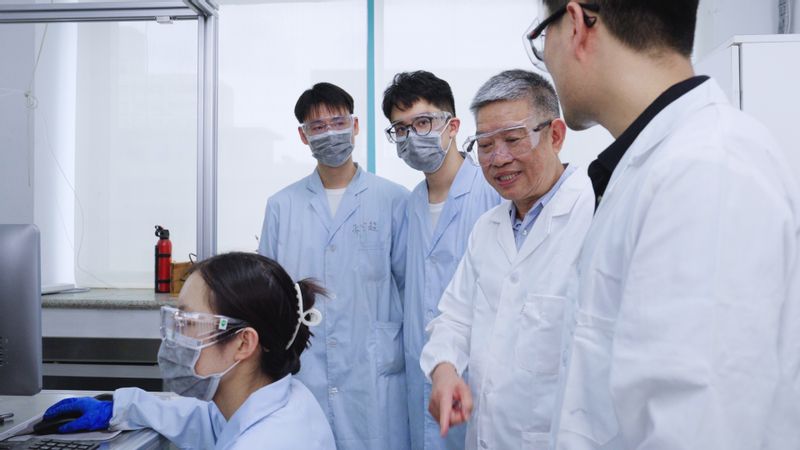 图片说明:团队成员在实验室研讨颠覆性新工艺