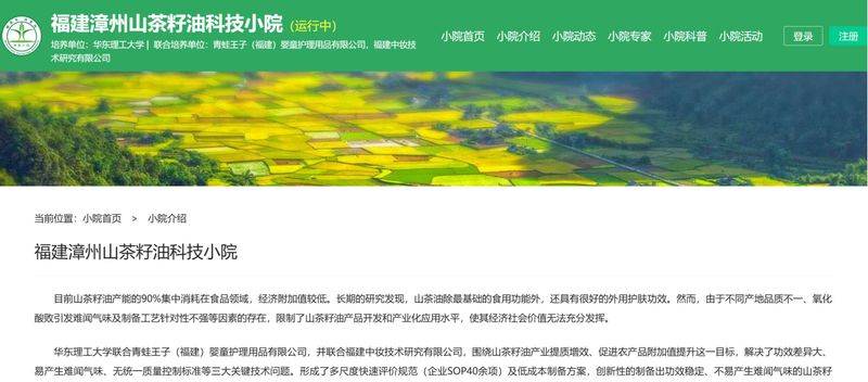 1月28日,由我校药学院、青蛙王子集团、福建中妆技术研究有限公司共同建设的“福建漳州山茶籽油科技小院”在全国科技小院服务管理平台正式上线运行,标志着校企合作在推动山茶油产业产学研深度融合与科技赋能乡村振兴方面进入新阶段。