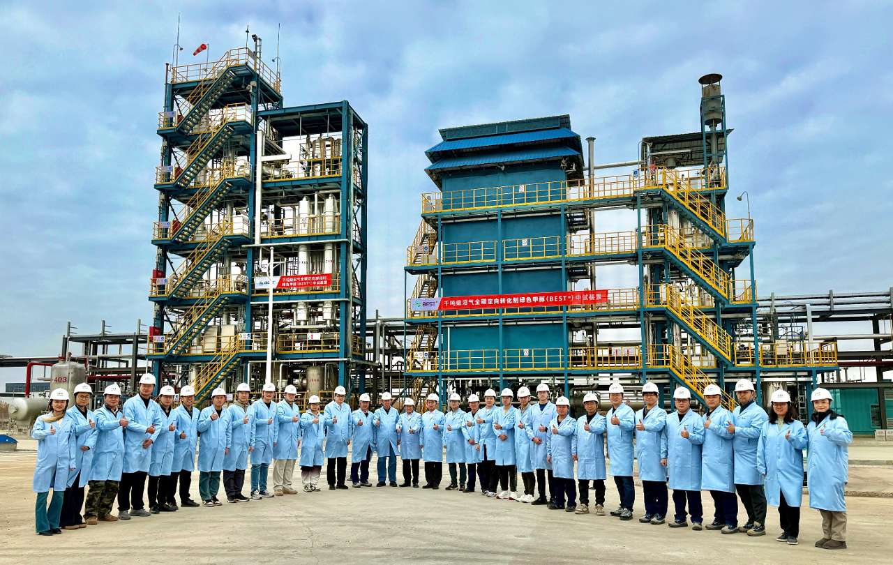 如今,这一瓶颈被沼气全碳定向转化制绿色甲醇(以下简称BESTm)技术打破了。它构建了“制沼单元—沼气净化单元—混合重整造气单元—绿色甲醇合成单元”的全链条工艺体系,通过电驱动混合重整造气耦合催化加氢的技术,可以将甲烷和二氧化碳中的碳近100%转化为绿色甲醇中的碳,实现“碳尽其用”。
