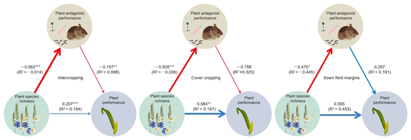 研究团队还利用结构方程模型,验证了“植物多样性→抑制害虫、病害和杂草→整体生产力提升”这一核心因果链条,证明了“生物防治”不是玄学,制定出可量化、可复制的科学方案。