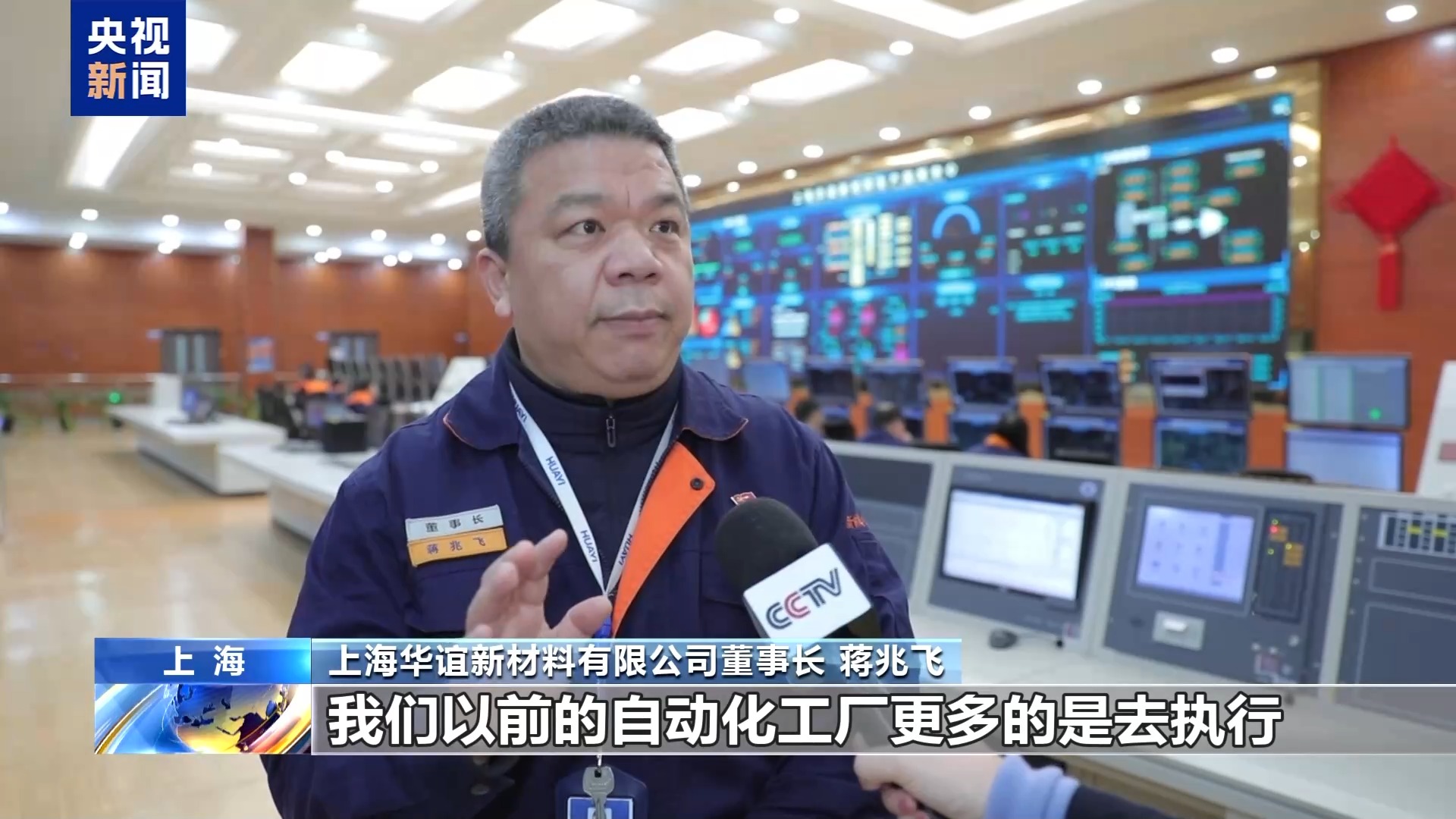 上海华谊新材料有限公司董事长 蒋兆飞:以前的自动化工厂更多的是去执行,但是现在做成了智能工厂之后,它有很大的一部分是通过数据,去分析这些数据来指导怎么去做能够做得更好。