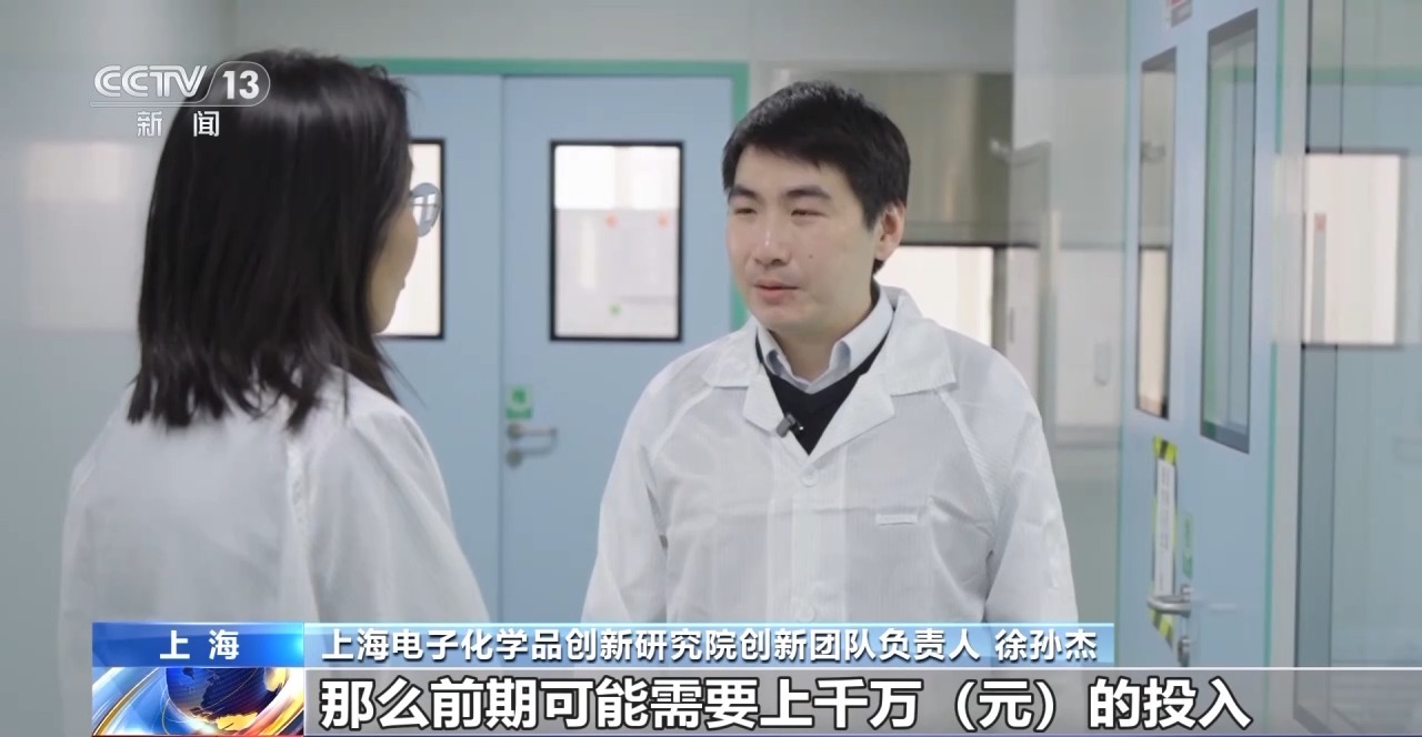 上海电子化学品创新研究院创新团队负责人 徐孙杰:如果我们自己去建立这样一个小中试平台,前期可能需要上千万元的投入。我们手上有一些专利、有一些技术,但却经常会卡在做不出和不敢做之间。