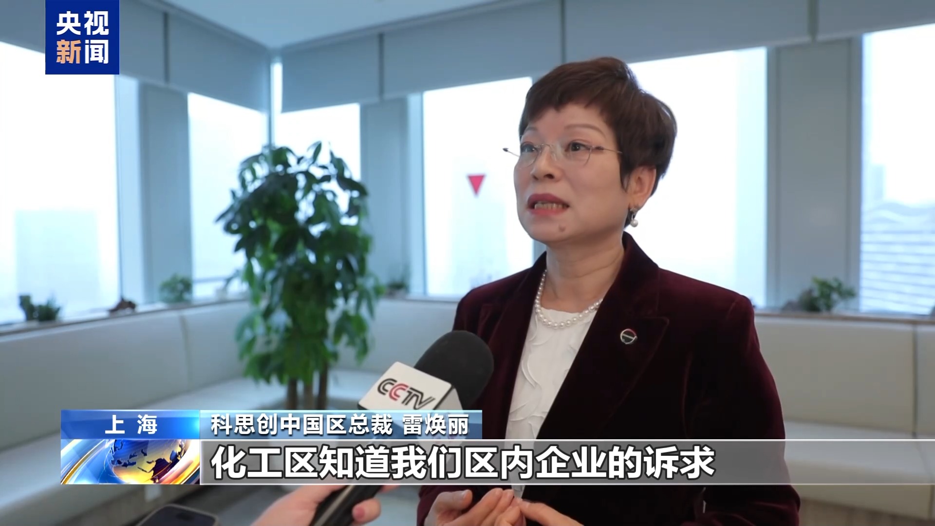科思创中国区总裁 雷焕丽:化工区知道我们区内企业的诉求,就组织我们企业把我们的诉求带上去,在各个环节里面去打通。