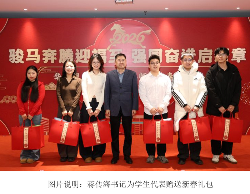 活动中,蒋传海向留校学生赠送了精心准备的新春礼包,详细询问同学们的学习生活情况,传递学校的亲切关怀。他鼓励同学们利用假期走出校门、走进基层,在实践中增长见识、锤炼才干,深化对强国建设、民族复兴伟业的理解,激发为国担当、勇为尖兵的青春热情,努力成长为具有家国情怀、国际视野、创新精神和实践能力的卓越人才。
