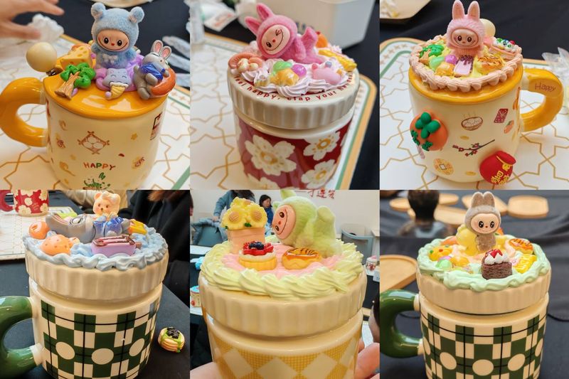 活动环节,平日里在岗位上严谨细致的女教工们瞬间化身为“生活美学家”。大家以奶油胶为墨,以马克杯为纸,或精心勾勒,或大胆撞色。在柔软的奶油胶上,大家镶嵌上形态各异的玩偶、配件等装饰物。现场欢声笑语不断,大家相互交流配色心得,分享创作灵感,气氛温馨而热烈。每一个作品都承载着创作者对美的理解和对生活的热爱,成为了这个节日里最独特的礼物。