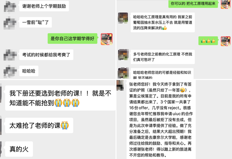 学期结束,同学们纷纷留下感言:“张老师的课让我找回了高中时渴求知识的状态”“感觉我不是在听课,而是在和张琪老师一起做一件有趣的事情”“张老师让我找到了自信,学会了自主理解分析而非死记硬背”……还有同学深情写道:“相信每一年,都会有学生像我一样被张老师温暖。未来无论走向工业界还是学术界,我们都会踏实做事、认真做人,把这份温暖传递下去。”