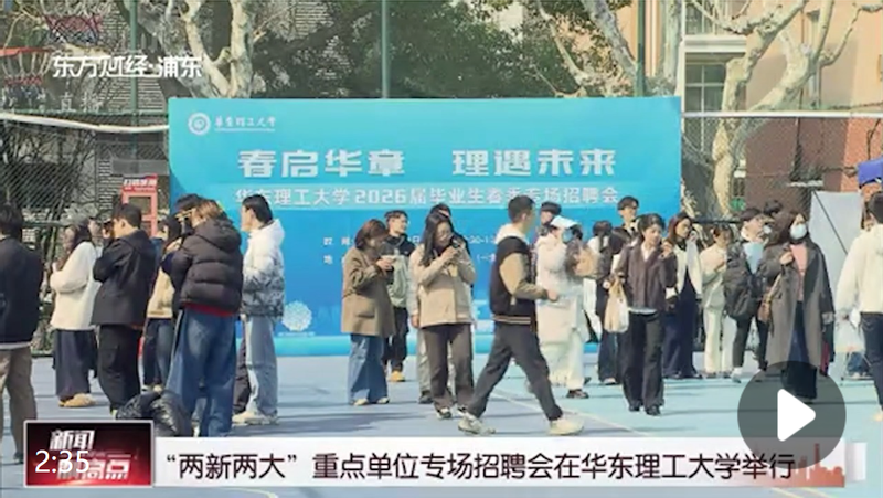为精准对接“两新两大”发展布局与新质生产力重点领域的人才需求,日前,2026届毕业生“两新两大”重点单位专场招聘会在华东理工大学举行。300多家企事业单位带来了两千多个优质就业岗位,助力企业引才与毕业生高效联动。