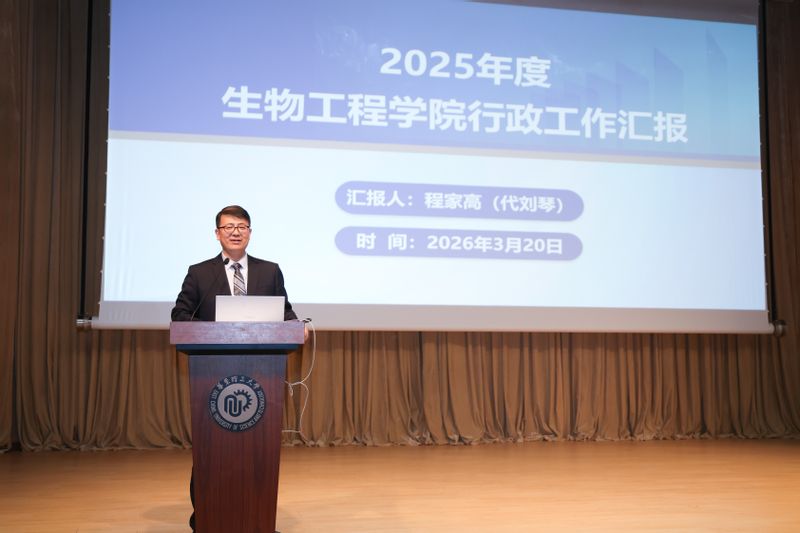 因院长刘琴在参加高校高层次人才研修班,学院党委书记程家高作了生物工程学院2025年度行政工作报告,系统总结了过去一年学院在教育教学、人才培养、科研创新、师资队伍建设、学科发展等方面取得的成绩,深入分析了当前学院发展面临的问题和挑战,明确了2026年的重点工作方向,并详细汇报了学院财务收支与运行情况。