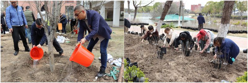 后勤绿化管理工作人员现场演示树木种植规范,师生分组协作,挥锹开穴、放树扶正、填坑夯苗、培土围堰、提水浇灌,并为每株新苗挂上专属树牌,师生在融融春光中植下片片新绿,30余株西府海棠、数百株锦带花卉扎根奉贤校区,为美丽校园建设再添生态底色。师生们纷纷表示,植树承载着对成长成才的期盼,这不仅是一堂生动的劳动教育课,更是一堂鲜活的生态文明实践课,亲手种下的苗木将成为一道亮丽的校园风景,这份参与感与成就感将成为校园记忆中的美好一页。