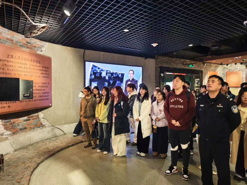 上海市公安博物馆是国内首座公安专题博物馆,馆藏丰富,是开展爱国主义教育和法治教育的重要基地。在刑事侦查馆,面对真实案例卷宗、各式作案工具和侦查技术演变的展示,同学们对诈骗犯罪的作案手法、社会危害性有了更深刻的认识。馆方讲解员现场为同学们剖析了“刷单返利”“冒充客服”“游戏交易诈骗” 等针对大学生群体的常见骗局,这些内容也与去年反诈视频中呈现的高频诈骗类型高度契合,让同学们在既有知识基础上,形成更直观、更立体的认知。