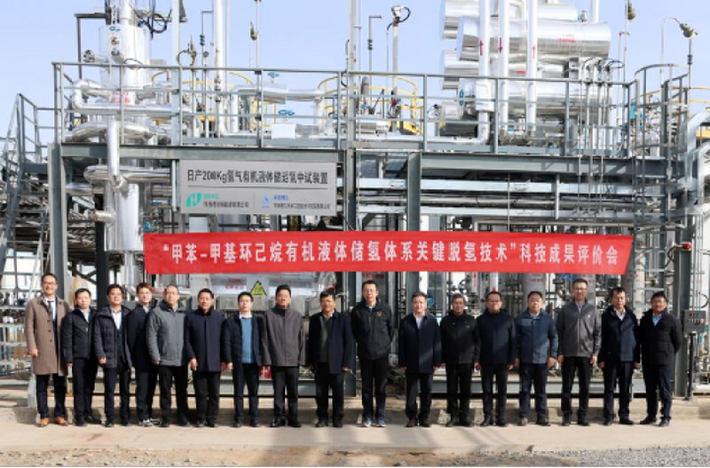 专家组实地考察了中试装置、审阅了技术资料,经质询讨论后一致认为:该成果建成了国内首套200kgH₂/d甲基环己烷脱氢中试装置,新型催化剂性能优异,装置运行稳定、关键指标优于设计值,为绿氢大规模安全储运提供了可行解决方案。评价委员会同意通过评价,认为该成果总体达到国际先进水平。