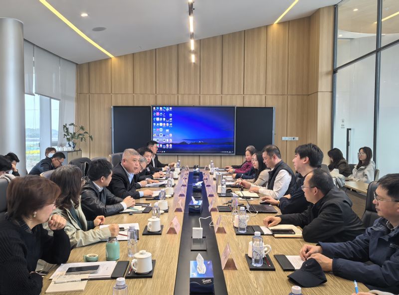 为主动对接奉贤区高质量发展战略,深化校地协同、推进产教融合,3月26日下午,我校党委常委、副校长、奉贤校区管理委员会主任李涛带领奉贤校区管委会成员赴奉贤区数字江海(海归小镇)调研座谈。上海江海数字产业发展有限公司总经理刘震,奉贤区发展改革委党组成员、副主任李红伟等出席座谈会。