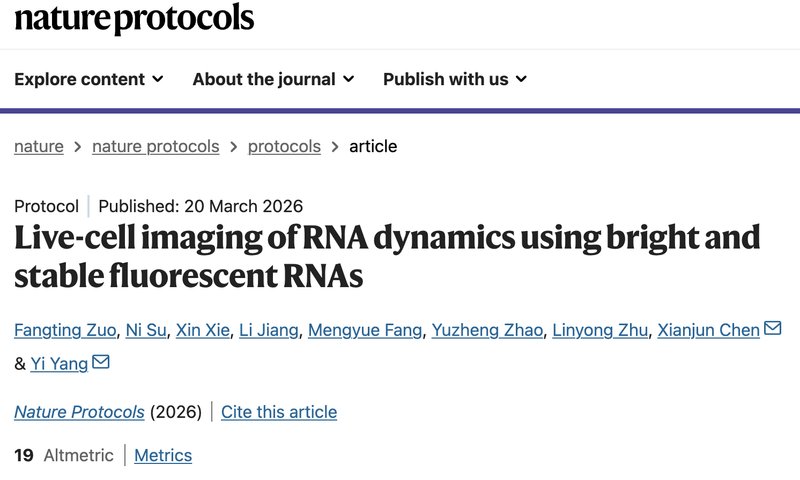 近日,我校药学院、生物反应器工程国家重点实验室、光遗传学与合成生物学交叉学科研究中心,杨弋和陈显军团队在活细胞RNA成像技术研究中取得最新进展,在《自然—协议》(Nature Protocols)期刊发表题为“Live-cell imaging of RNA dynamics using bright and stable fluorescent RNAs”的研究论文。
