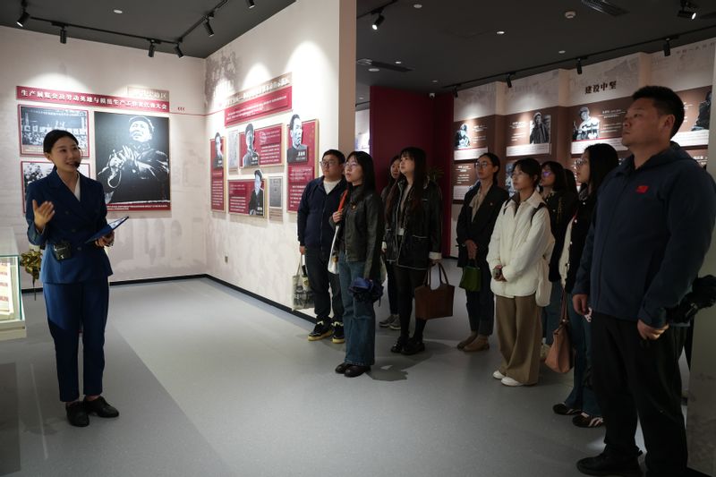 研学活动的第一站是参观“中国工运时代先锋人物主题展”。展览以工运先锋人物为核心载体,生动镌刻中国工人阶级在革命、建设、改革各个历史时期的奋斗足迹,深情回望中国工运事业的发展历程。机关青年在一幅幅珍贵史料与场景复原前驻足学习,从早期工运先驱的浴血奋斗,到新中国建设者的无私奉献,从改革开放先行者的敢闯敢试,到新时代大国工匠的精益求精,一段段感人故事、一个个先锋形象,带领大家重温中国工人运动波澜壮阔的光辉历程,感受意蕴其中的使命担当与精神传承。