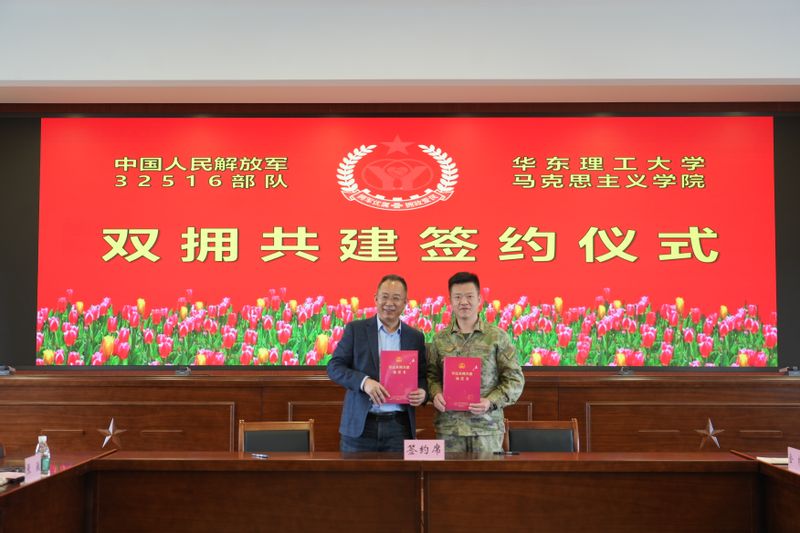 座谈会上,32516部队上校部队长杨万军介绍了部队的发展历程以及近年来在党的领导下取得的建设成果。马克思主义学院党委书记邱卫东介绍了华东理工大学以及马克思主义学院的发展情况,希望通过合作共建将习近平强军思想的生动实践融入思政课堂,切实提升思政课建设实效。在双方共同见证下,马克思主义学院院长周文与32516部队上校政治委员张鹏签署共建协议,正式建立军校协同育人长效机制。