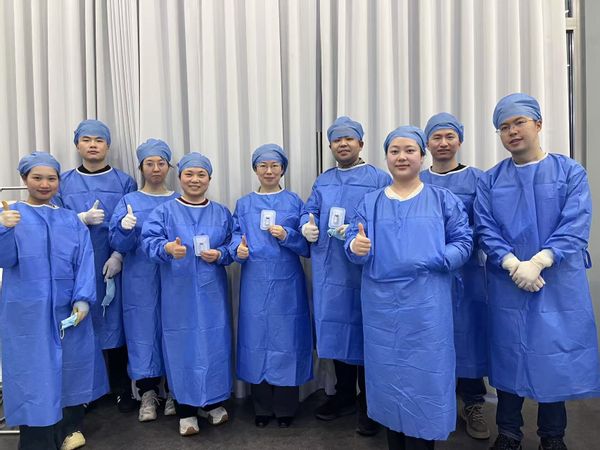 图片说明:2025年创业团队在人工角膜临床前动物实验现场合影(屈雪为左五)