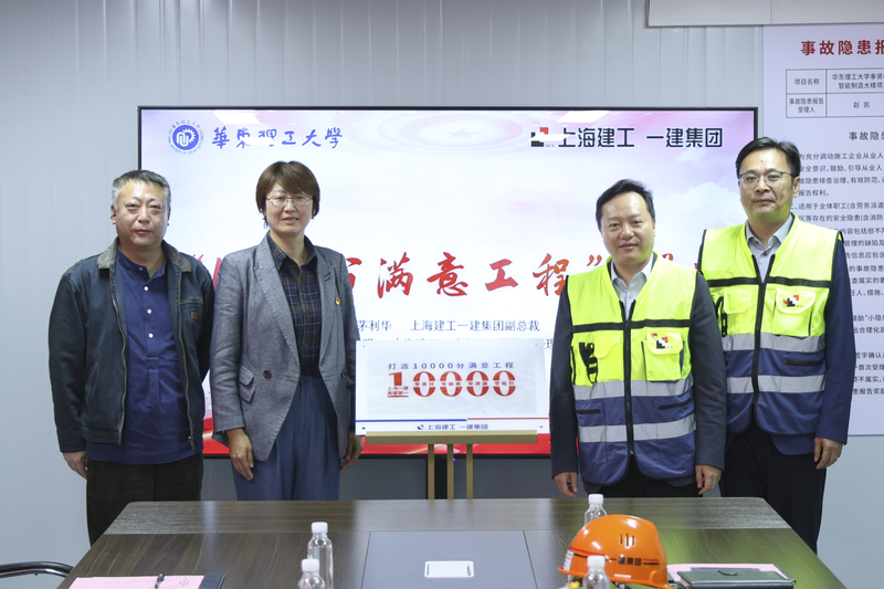 为进一步展现全力打造高标准、高品质、师生满意精品工程的决心,茅利华宣读打造“10000分满意工程”承诺书。基建处副处长于灏、满桂云,茅利华、一建集团经营部总经理严明共同为“10000分满意工程”揭牌。