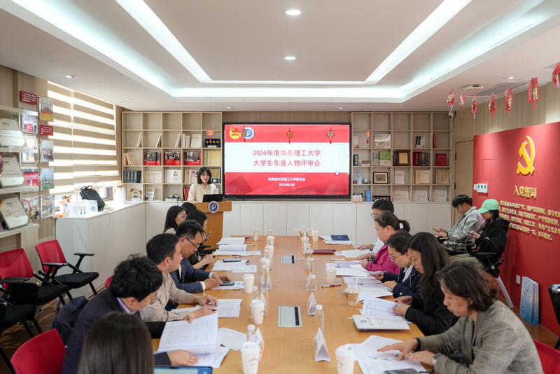 为全面贯彻党的二十届历次全会精神和全国教育大会精神,全面实施“新时代立德树人工程”,贯彻落实学校第十二次党代会精神,充分展现华理学子奋发向上的精神风貌,彰显先进典型的示范引领作用,激励广大华理学子坚定信念、勇当尖兵,争做堪当民族复兴重任的时代新人,近日,华东理工大学2026年“大学生年度人物”评审会在徐汇校区大学生活动中心104会议室召开。党办、校办、组织部、宣传部、学工部、研工部、教务处、科研院、国交处、信管中心、保卫处、后保处、团委等相关部门负责人担任评委。