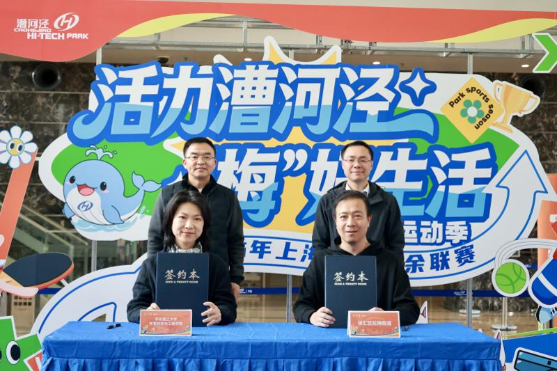 启动仪式结束后,体育科学与工程学院与徐汇区虹梅街道正式签署党建共建协议。双方将围绕“党建引领、专业赋能、产城融合、共建共享”的目标,在党建联学、志愿服务、群众体育活动组织、科学健身指导、公共体育服务优化、体质监测与运动健康服务、人才培养联动等方面深化合作,积极探索“高校 + 街道 + 园区”协同联动的区域化党建共建新路径。