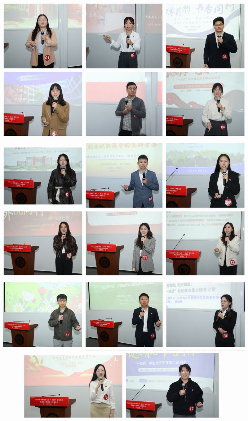 今年3月,学校启动第三批“一站式”学生社区党支部示范项目创建工作,创新性地构建了“学生出题、支部答题”的“揭榜挂帅”全新机制,将学生的“急难愁盼”转化为支部的“履职清单”,形成“需求从学生中来、服务到学生中去”的精准响应模式,有效激发了基层党组织的服务活力与学生的参与感、获得感。围绕德智体美劳,聚焦红色社区、书香社区、致知社区、悦动社区、聆心社区、“职”引社区、风雅社区、数智社区、力行社区九个方面开展示范项目创建。经支部申报、学院推荐,共有17个项目入围校级评审。