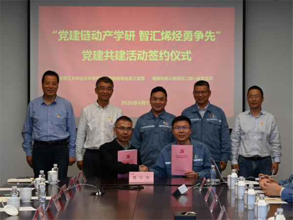 4月15日,信息学院领导班子成员、党委委员、组织员、教工入党积极分子代表和自动化系第三党支部成员前往镇海炼化公司开展树立和践行正确政绩观学习教育,并举行“党建链动产学研 智汇烯烃勇争先”党建共建启动仪式。
