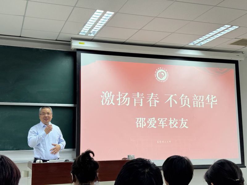 随后,邵爱军以“激扬青春,不负韶华”为题带来专题分享。他结合自身成长环境、求学经历与职业发展历程,讲述学习如何改变人生轨迹、实现人生价值,强调扎实专业知识是立身之本,提醒同学们远离网络“毒鸡汤”与碎片化信息干扰,坚持自然科学与人文素养并重,不断提升认知水平。他结合企业用人实际,明确提出三项核心选才标准:专业基础扎实,具备问题解决能力;拥有持续再学习能力;富有团队协作与分享精神。讲座最后,邵爱军以写给孩子的家书与同学们共勉,寄语大家做自强不息、厚德载物、明辨本质的新时代青年。