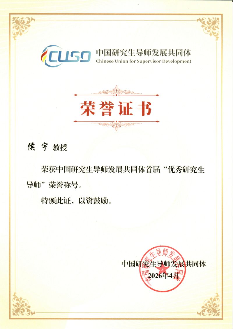 侯宇教授先后指导60余名硕博士研究生,聚焦能源与环境领域国家重大战略需求,致力于太阳能转换背景下新型清洁能源关键功能材料及其器件的设计、制备与应用基础研究。近年来,在Science、Nature Commun.、Angew. Chem. Int. Ed.、Adv. Mater.、J. Am. Chem. Soc.等期刊上发表论文80余篇,其中14篇入选ESI高被引论文,研究成果被新华社、人民日报等中央媒体专题报道。坚持“思政引领、产教协同、创赛共育”育人理念,持续推进“学训赛创”一体化实践育人模式,着力培养理想信念坚定、专业基础扎实、创新意识突出的新时代拔尖创新人才。指导学生获“挑战杯”全国大学生课外学术科技作品竞赛特等奖、中国国际大学生创新大赛三等奖、“挑战杯”上海市大学生课外学术科技作品竞赛特等奖、中国国际大学生创新大赛上海赛区金奖等。