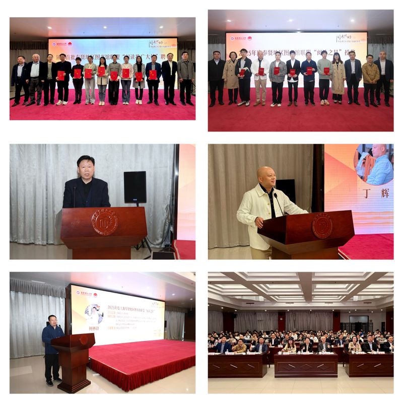 开幕式现场还举行了奉贤地区图书馆联盟“阅读之星”和首批“阅读推广大使”授奖授聘仪式。我校商学院2025级应用经济学专业研究生薛自立以及来自上海奉贤地区图书馆联盟各单位的师生代表共六人荣获2025年度“阅读之星”称号,过去一年中,他们以高频借阅和广博阅读,成为引领书香风尚的榜样,生动诠释了对知识的坚守与热爱。杨发祥、吉久明等八位师生获聘为首批“阅读推广大使”,未来一年里,他们将扎根校园阅读主阵地,充分发挥示范引领作用,积极承担起阅读推广、文化传播与共建的重要使命,以行动凝聚书香共识,用热情点亮阅读之光。上海师范大学何林峰、奉贤区图书馆丁辉、上海应用技术大学图书馆董国文等作为“阅读之星”或“阅读推广大使”代表进行了交流分享。