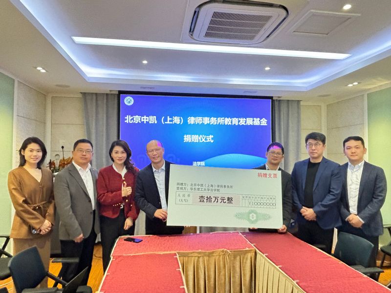 4月15日,北京中凯(上海)律师事务所与法学院合作洽谈暨捐赠仪式在徐汇校区举行。北京中凯(上海)律师事务所副主任崔天送、高级合伙人赵有军、刑事专业委员会主任与管理合伙人谢佩之、合伙人顾郡雯,法学院院长彭德雷、副院长周登谅、青年教师李雪健出席本次活动。