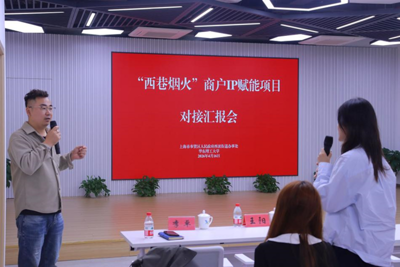 在活动后的交流讨论环节,新南居民区党总支书记沈丹丹及全体商户代表,围绕设计方案优化、IP落地应用、商户实际需求等与学生们进行了更深入的交流。这场活动也为华理师生团队与西渡街道的社区治理合作项目拉开了帷幕。据悉,华东理工大学的专家团队将进一步推动与地方政府合作,将高校专业优势与商户发展需求、社区治理需求紧密结合,助力“西巷烟火”特色项目落地生根,进一步激活西渡街道城市烟火气与社会活力。