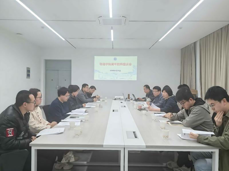 4月22日,物理学院召开青年教师座谈会。学院党委书记钮月萍、院长郑致刚与青年教师代表齐聚一堂,围绕师德师风建设、教学科研工作和学院“十五五”规划等主题进行交流。