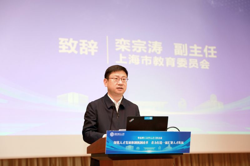 栾宗涛代表上海市教委致辞,充分肯定了华东理工大学人才工作成效,对学校聚焦国家战略、服务上海科技创新中心与高水平人才高地建设提出四点期望。一是筑牢政治灵魂,坚持党管人才不动摇。把党的领导贯穿人才工作全过程、各方面,引领广大人才深怀爱国之心、砥砺报国之志,自觉把个人追求融入国家强盛、民族复兴和城市发展伟大事业。二是深化改革攻坚,激发人才活力不松劲。落实人才发展体制机制改革要求,完善以创新能力、质量、实效、贡献为导向的评价体系,为人才松绑,让人才静心研究、潜心创新。三是服务国家战略,对接上海发展不停步。主动对标国家战略需求、上海市五个中心建设和“2+3+6+6”现代产业体系,在关键核心技术攻关、卓越工程人才培养、产学研协同创新上勇当尖兵。四是打造一流生态,广聚天下人才不懈怠。用心用情做好人才服务保障,完善引育留用全链条机制,加快形成近悦远来的人才发展生态,让各类人才干事有平台、发展有空间、成长有保障。