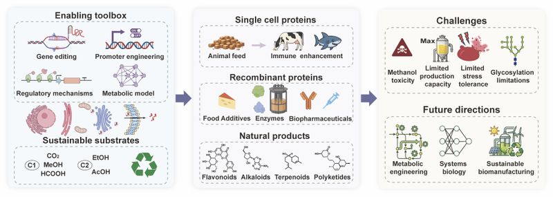 尽管巴斯德毕赤酵母已展现出广泛应用潜力,其在超高水平蛋白表达、复杂产物合成效率以及工业放大稳定性等方面仍面临挑战。未来有望通过多组学解析、动态调控、代谢工程、过程强化与代谢模型等策略,进一步提升其工程鲁棒性与产业适配能力,推动其成为通用型的生物制造核心底盘宿主。