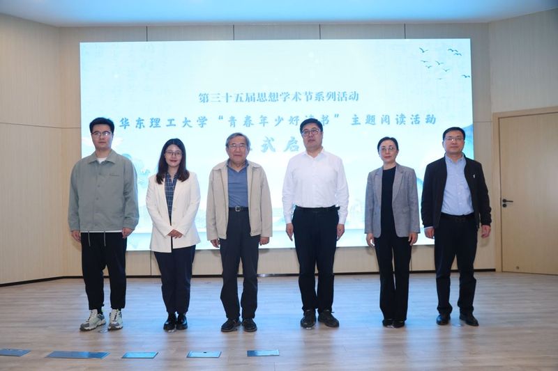 沈海涛、王延水、赵乐、董龙凯、葛剑雄以及华东理工大学信息科学与工程学院程添逸同学,一同启动了主题阅读活动、发布了100本“华理青年荐读书单”。