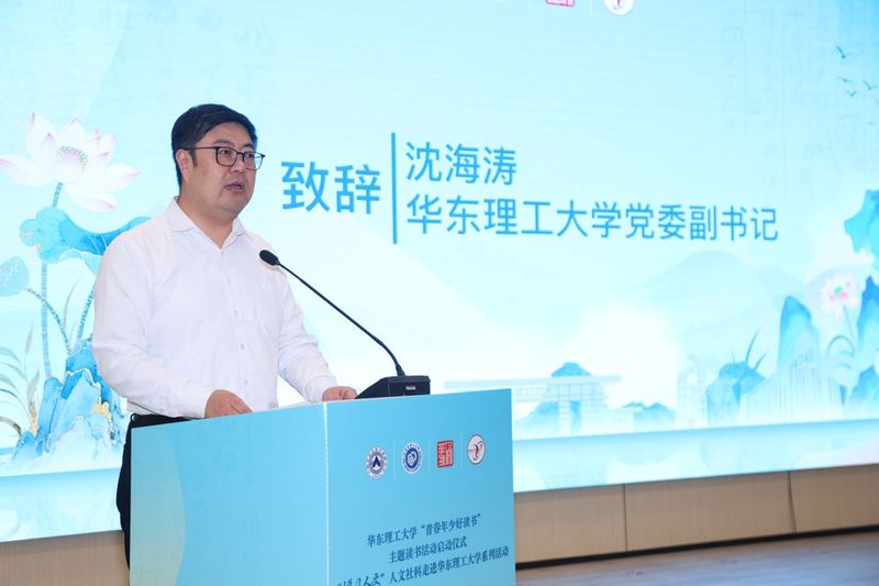 沈海涛在致辞中强调,党的十八大以来,习近平总书记高度重视全民阅读,作出一系列重要指示批示,率先垂范倡导读书。在首个“全民阅读活动周”召开之际,华东理工大学认真落实立德树人根本任务,始终积极响应国家号召,以实际行动落实《全民阅读促进条例》精神,将阅读推广作为文化育人的关键抓手。学校将以“青春年少好读书”主题阅读活动为起点,贯彻落实习近平文化思想、推动书香校园建设。同时他对青年提出了三点期望,一是以书为友,养成终身阅读的习惯。二是以读促思,在经典中汲取智慧。 三是以行践知,把读书所得转化为报国担当。希望同学们将阅读中获得的启发、激发的热情,投入到科技创新、社会实践中去,努力成为既有科技素养又有人文情怀的拔尖创新人才,在中国式现代化的征程上书写青春华章。
