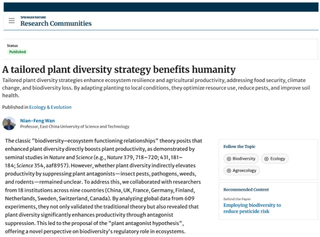 近日,我校药学院万年峰课题组在Nature子刊—Nature Ecology & Evolution上发表了题为“Global evidence that plant diversity suppresses pests ...