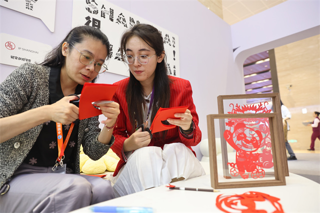 // “非遗剪纸×进宝”来到进博会 //